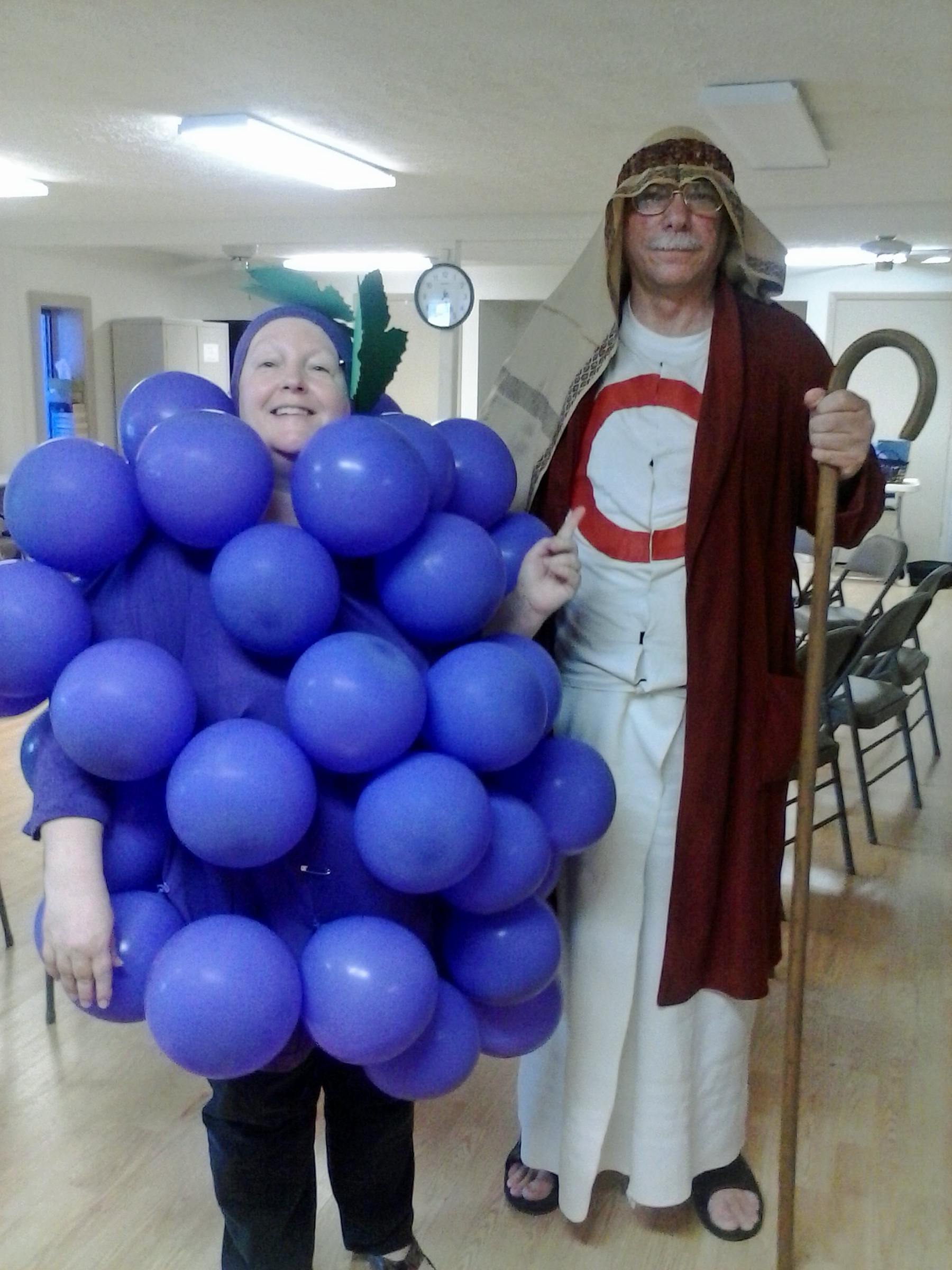 Babies, toddlers, children, adults, grandparents, and one great-grandmother attended the Family Night on May 31, 2014. Everyone was encouraged to dress up in something related to a Bible verse. After mingling over snacks and trying to guess who (or what) people were dressed as, we spent some time matching people up with their scripture verses. What a variety of costumes and verses we had: Jael, Zepphora, young David, the daughter of Herodias, Benaiah, Hadassah (young Esther), Queen Esther, Moses parting the Red “C” (Sea), a virtuous woman, Lydia, Noah’s Ark story, a fox in grapes, animals of the sea, a baby duck, and a Jailer. Next we had some fun Bible games. Starting with the youngest, everyone (who wanted to) said a Bible verse from memory. Then we divided into three groups to form “freeze frame scenes” for the other groups to guess (kind of like still-life-charades). Following that we had some trivia questions about the twelve disciples and realized we didn’t quite know as much as we thought. We rounded the evening out with more time to sample the delicious snacks and just relax with each other. Thanks to Marissa Patterson for being our organizer and MC for the evening. A good time was had by all!