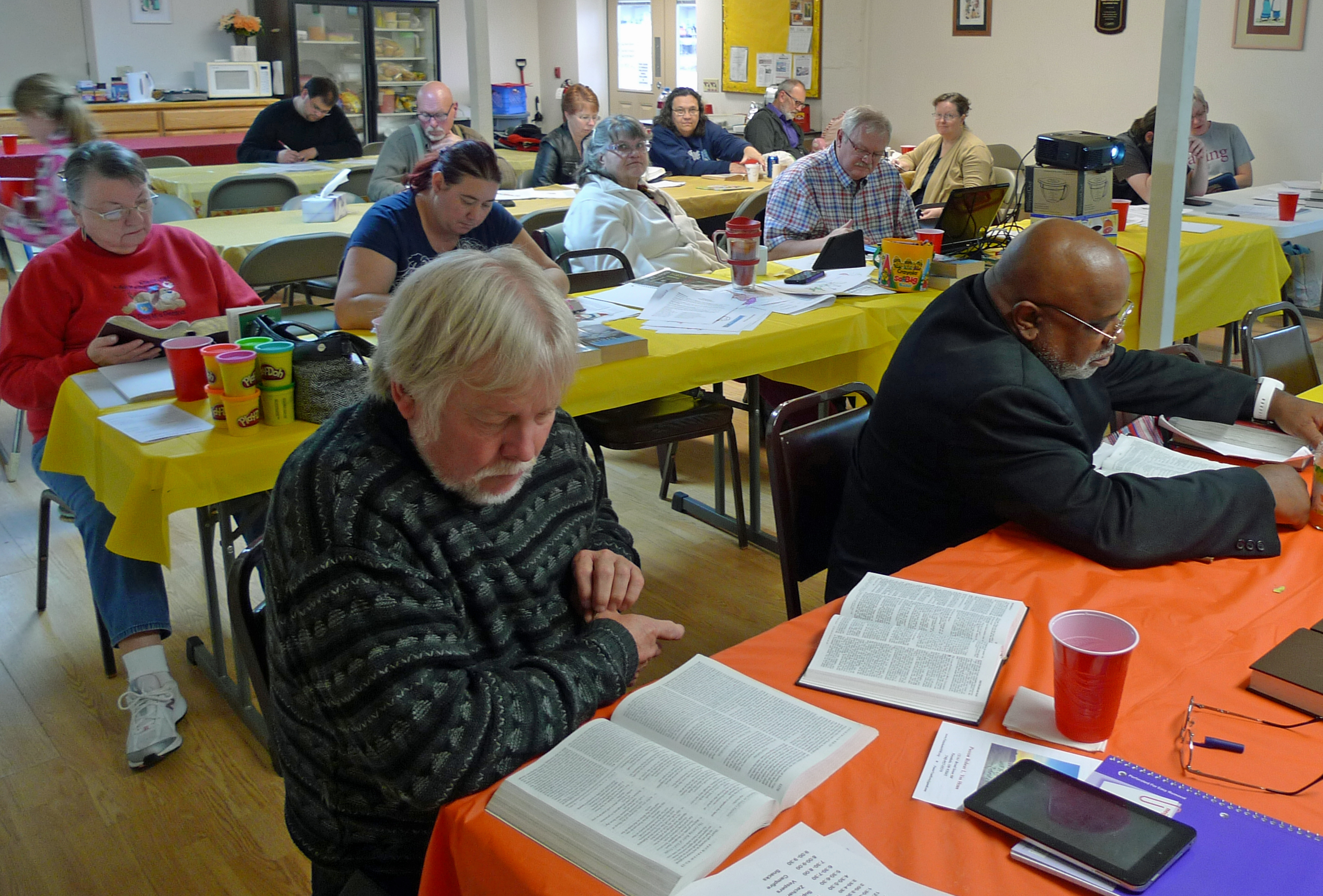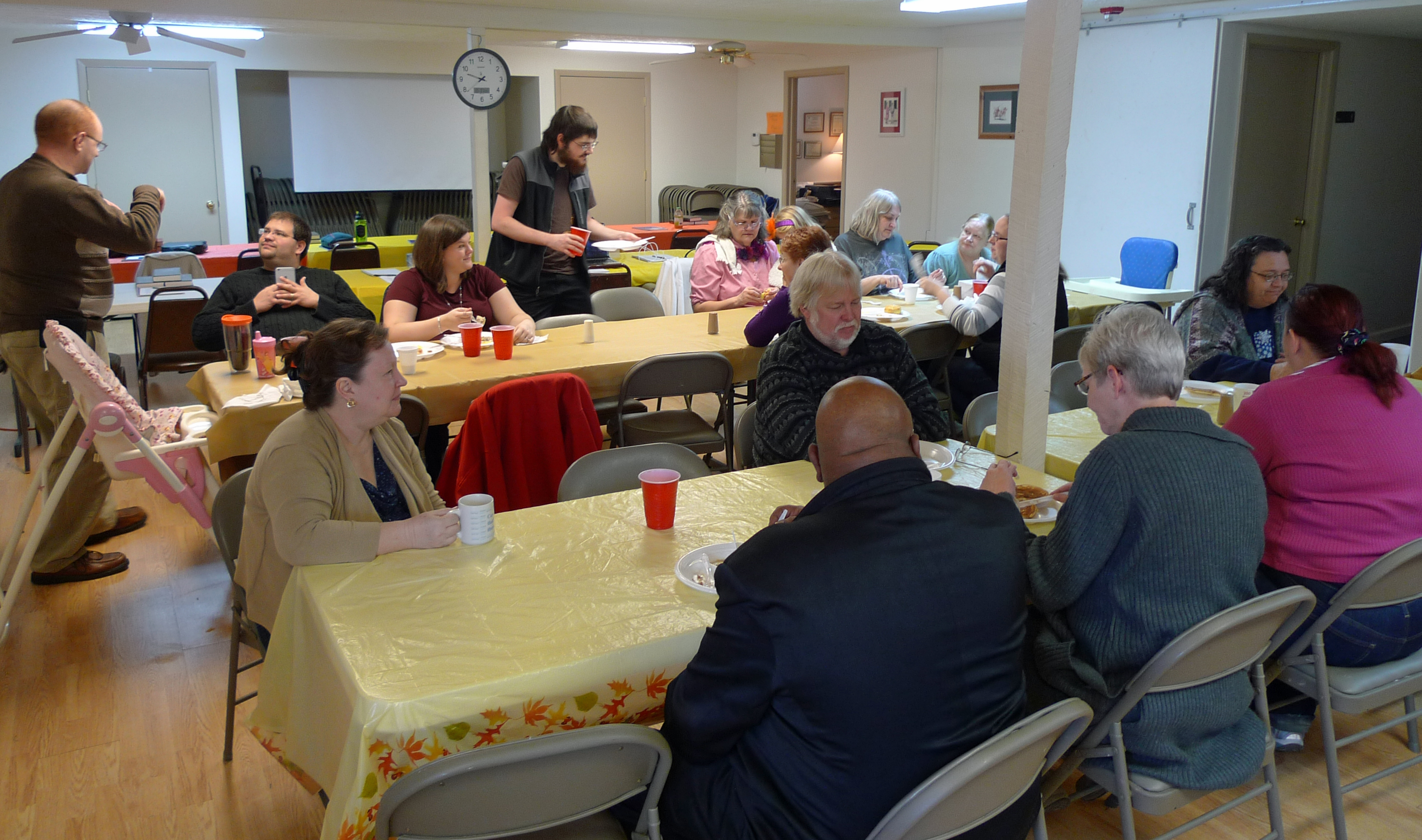 After some snacks and good-byes, people left for home Friday night around 9pm, only to return at 9am the next morning for a delicious breakfast consisting of pancakes, bacon, sausage, biscuits & sausage gravy, cheesy scrambled eggs, juice and coffee. Following breakfast we had 2 sessions on Zechariah, looking at chapters 1-3 first and then chapters 4-6. For lunch we had a fellowship (potluck) meal with some extended time for those who wanted to rest or visit further.