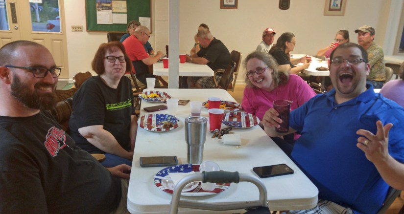 On June 9, 2018 our church had a Cookout & Movie Family Night. As usual, there was lots of food, family, friends, and fun for all ages. The church provided hamburgers & hot dogs which were skillfully prepared by Pastor Robert Van Horn. The other people attending brought side dishes and desserts to share. After a relaxing time of sharing the food and visiting, we headed into the sanctuary to view the movie “Woodlawn” based on a true story. The movie was entertaining as well as inspiring and thought provoking. It is safe to say, “A good time was had by all!” Check out the pictures below.