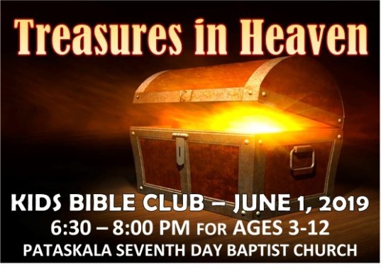 jun kids 17“Treasures in Heaven” was the theme for the monthly Kids Bible Club held June 1, 2019. We started off with an opening including the song “You are My All in All” and a fun skit by Pastor Robert & Christopher Van Horn about a boy obsessed with pirates asking his Dad about how to get to Heaven.  After several detours to discuss “pirate stuff” they concluding with the thought that the Bible is like a treasure map telling us how to get to Heaven.jun kids 16