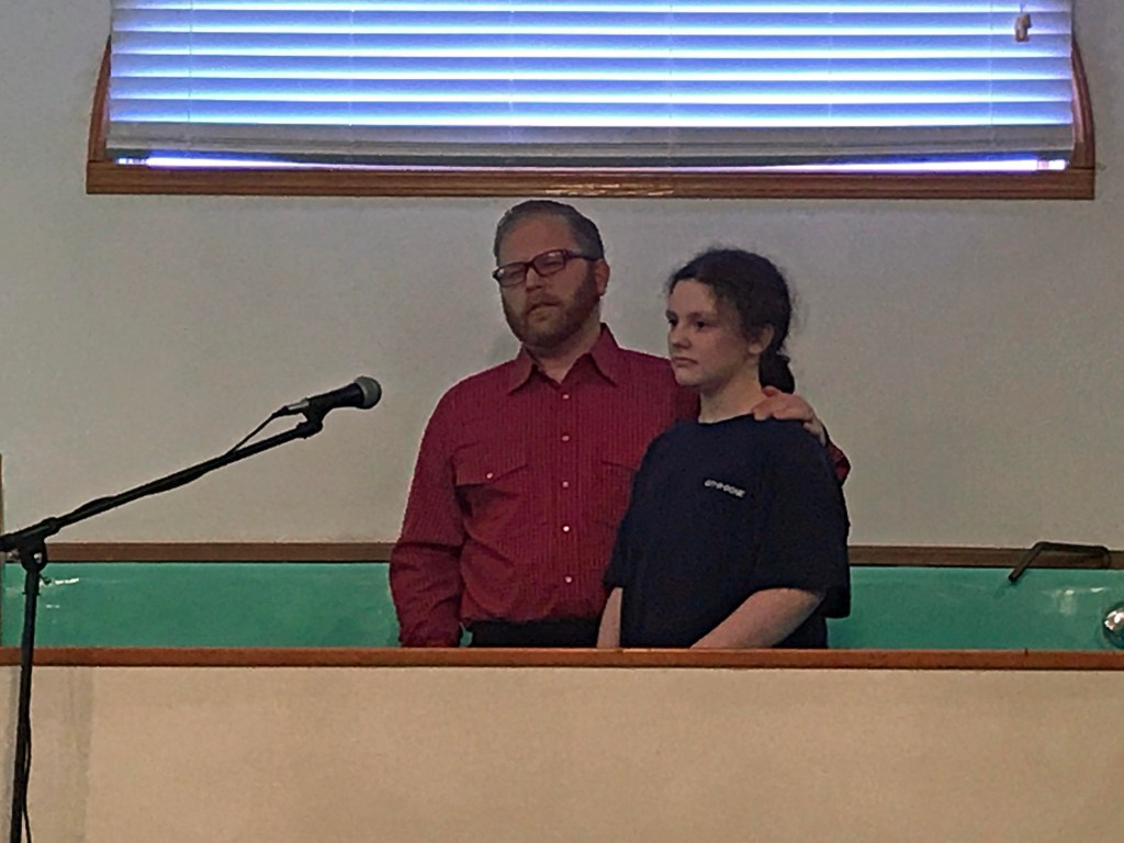 It was a great day to have a baptism! Lillian Royer had been waiting about a year due to COVID-19 shutdowns and was now able to publicly share her decision to follow Jesus Christ. During the morning worship service on June 5, 2021 at the Pataskala Seventh Day Baptist Church the pastor Chuck Meathrell had the privilege of baptizing her. The baptism was happily witnessed by the church congregation including Lillian’s proud parents.