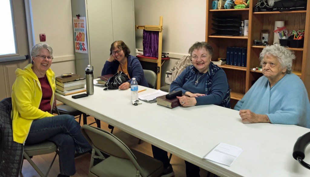 Each Wednesday morning from 10:30am to noon you’ll find a small group of women meeting together at the Pataskala Seventh Day Baptist Church for a time of powerful prayer and encouraging Bible Study. The group started meeting in January 2022 and is currently studying the book of Romans led by Becky Van Horn (above left) and Marge Patrick (second from right).