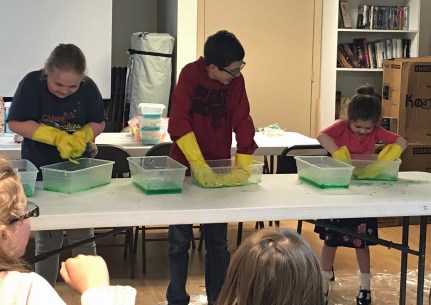 For craft time each of the kids got to make their own slime and after that we had a series of “Minute-to-win-it” games all using different kinds of slime! We cleaned up and enjoyed a snack before we ended for the evening. It was a fun time for every one there!