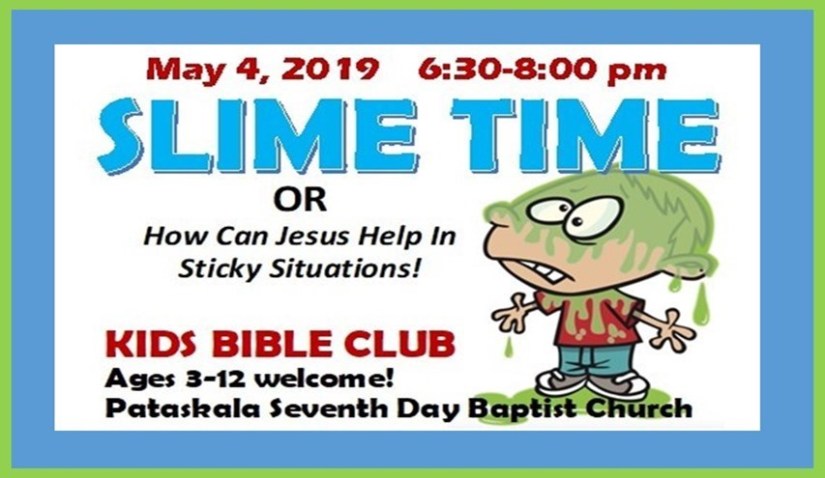On Saturday night May 4, 2019 our May Kids Bible Club had the theme “SLIME TIME – or How Can Jesus Help in Sticky Situations”. It was a fun evening beginning with a slime skit (see video below) followed by a Bible lesson looking at several people in the Bible who had some bad days and the amazing miracles our powerful God did for each of them. We studied people like Moses, Daniel, Lazarus, Jonah, the disciples and Paul & Silas.